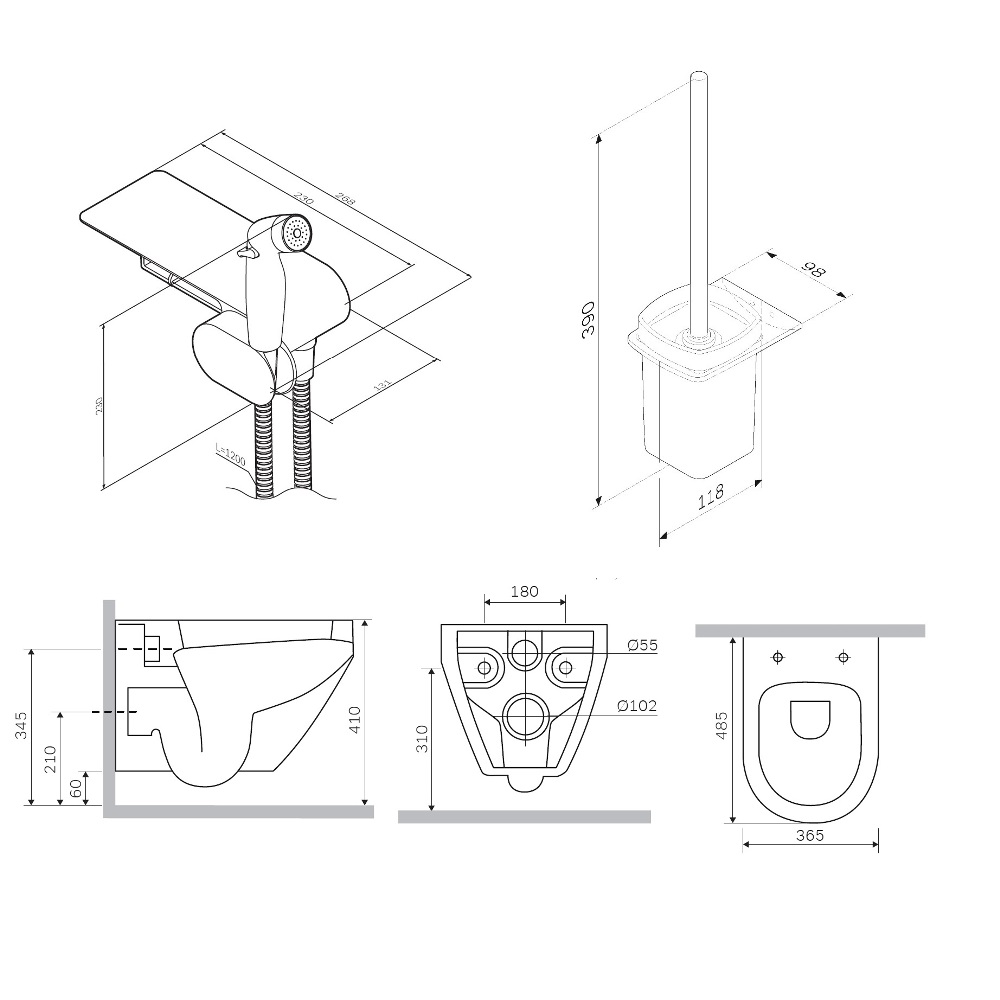 Завершает комплект подвесная cтойка с туалетной щеткой в матовом черном цвете. Обтекаемая форма и стильные элементы из ультратонкого сверхпрочного стекла напоминают современные смартфоны внешне и тактильно.