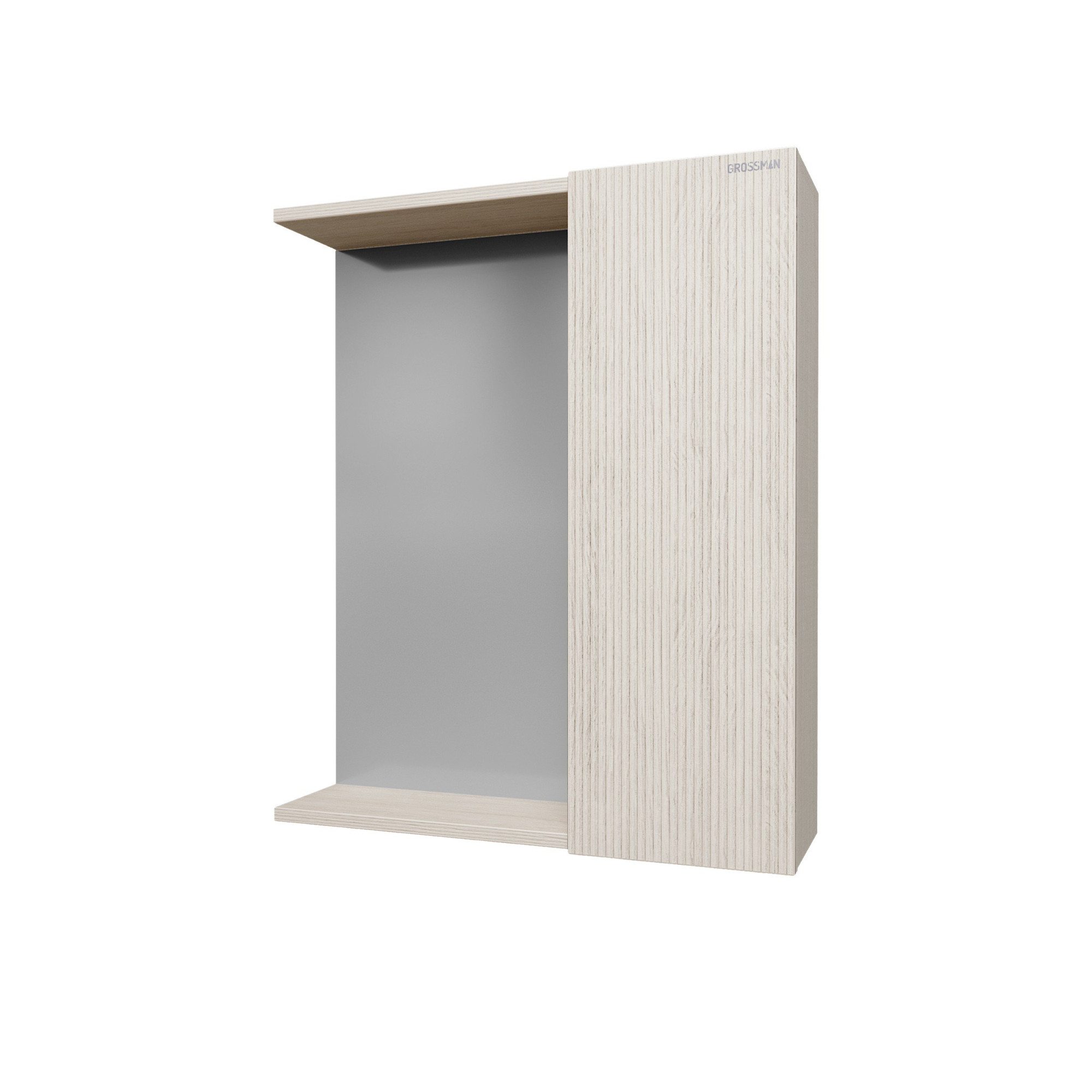 Шкаф-зеркало оснащено открытой полкой, где можно разместить различные предметы для удобного доступа.